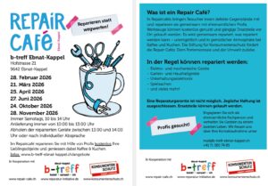 Möchtest du etwas reparieren lassen oder reparierst selber gerne kaputte Dinge? Dann bist du im Repair Café genau richtig. Denn neu kaufen war gestern, heute wird repariert!